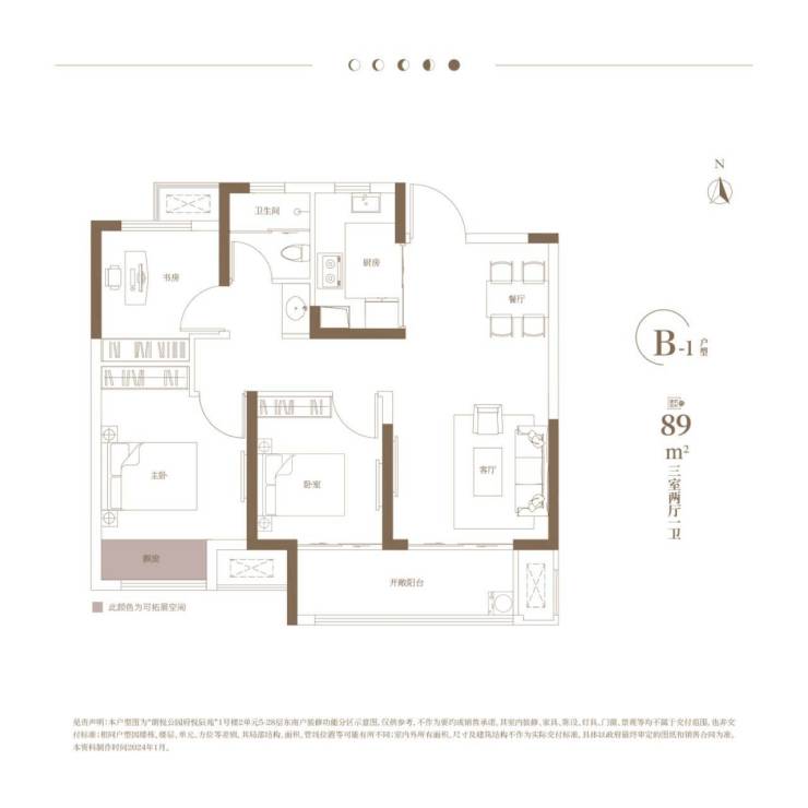 悦辰苑B1户型:建面约89㎡三房两厅一卫