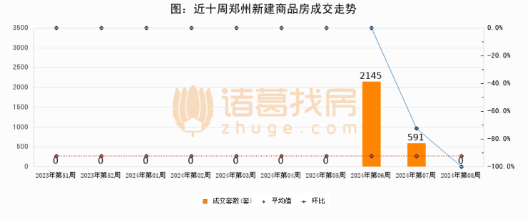 进入2024年第07周(02月12日-02月18日),郑州新建商品房成交0套,较上周减少591套,环比下降100%