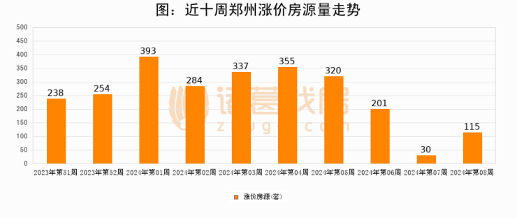 从调价房源来看,第7周郑州涨价房源115套,较上周上涨283.3%。与此同时,7周涨价房源占比回落10.03个百分点,业主信心小幅波动,购房者可则需入市。