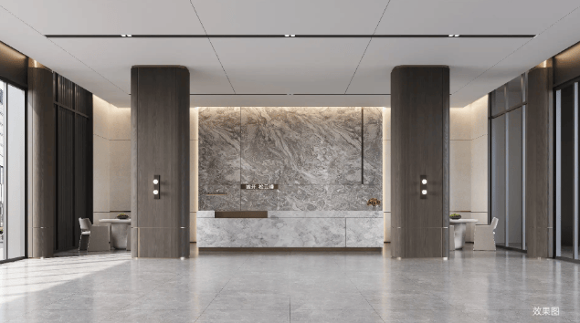 美学立面:采用现代典雅的立面设计,线条简约,色调恢弘大气,彰显独特的建筑美学辨识度。