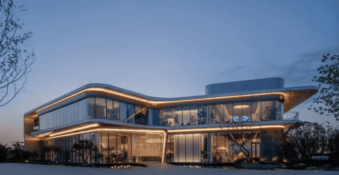 先锋美学立面:建筑采用现代极简的先锋美学立面,大尺度落地窗与公建化设计,搭配270°环幕视野,实现建筑与自然的无界对话,尽揽山河城景。