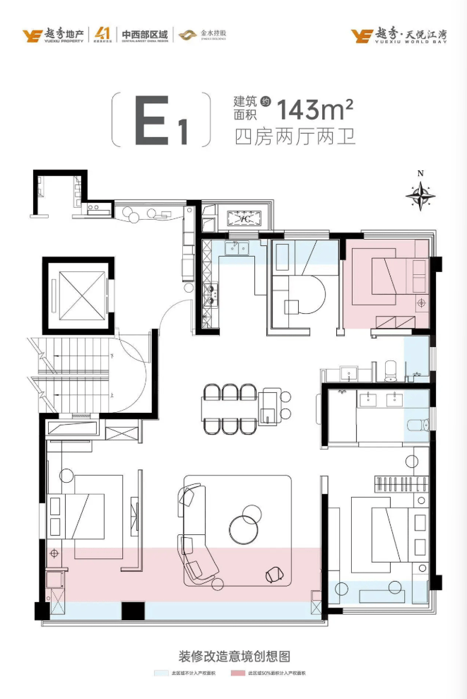 突破性高得房率户型:项目创新推出综合得房率约100%的143㎡户型,其实际使用空间体验可对标市面上约180㎡产品;同时,127㎡户型综合得房率亦高达约99%,并实现270°环幕式景观阳台,以极高的空间效率赋能居住舒适度。