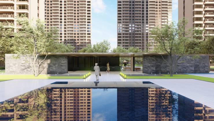 采用新亚洲建筑风格,线条明朗,沉稳挺拔,尽显大宅风范。社区入口引入公馆大堂概念,满满归家仪式感,彰显高端形象。