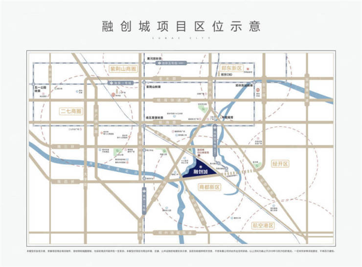 融创城,位于郑州中州大道与紫辰路交会处,地处郑州新型规划区域商都新区中部。十八里河、七里河、南水北调河纵横交错,保留大面积原生植被,方圆五公里内还打造了郑新公园、世纪欢乐园、金沙湖公园、福塔公园,另有滨河公园,形成郑东南区的绿化中心