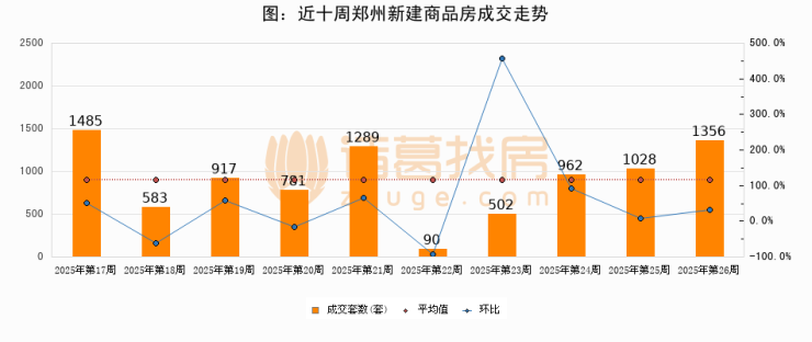 【郑州成交周报】第26周新房成交1356套,二手房1153套,涨价房源96套