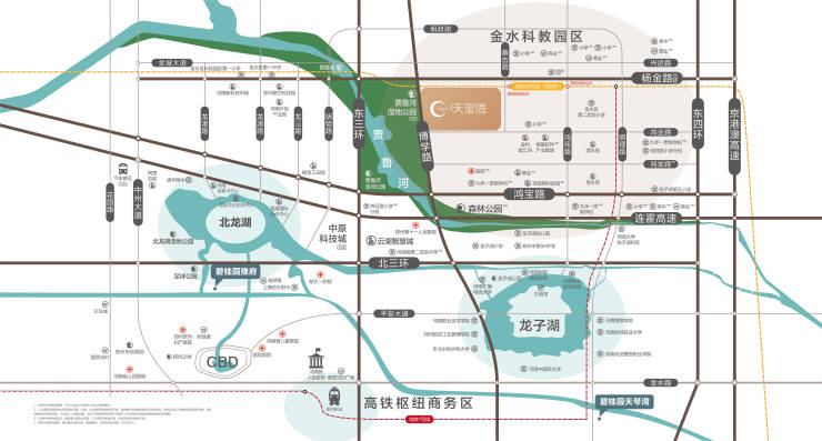 紧邻约565亩贾鲁河生态湿地公园(规划),北邻黄河湿地,西接北龙湖、南接龙子湖湿地公园,尽享优质生态环境,同时兼得城市繁华配套