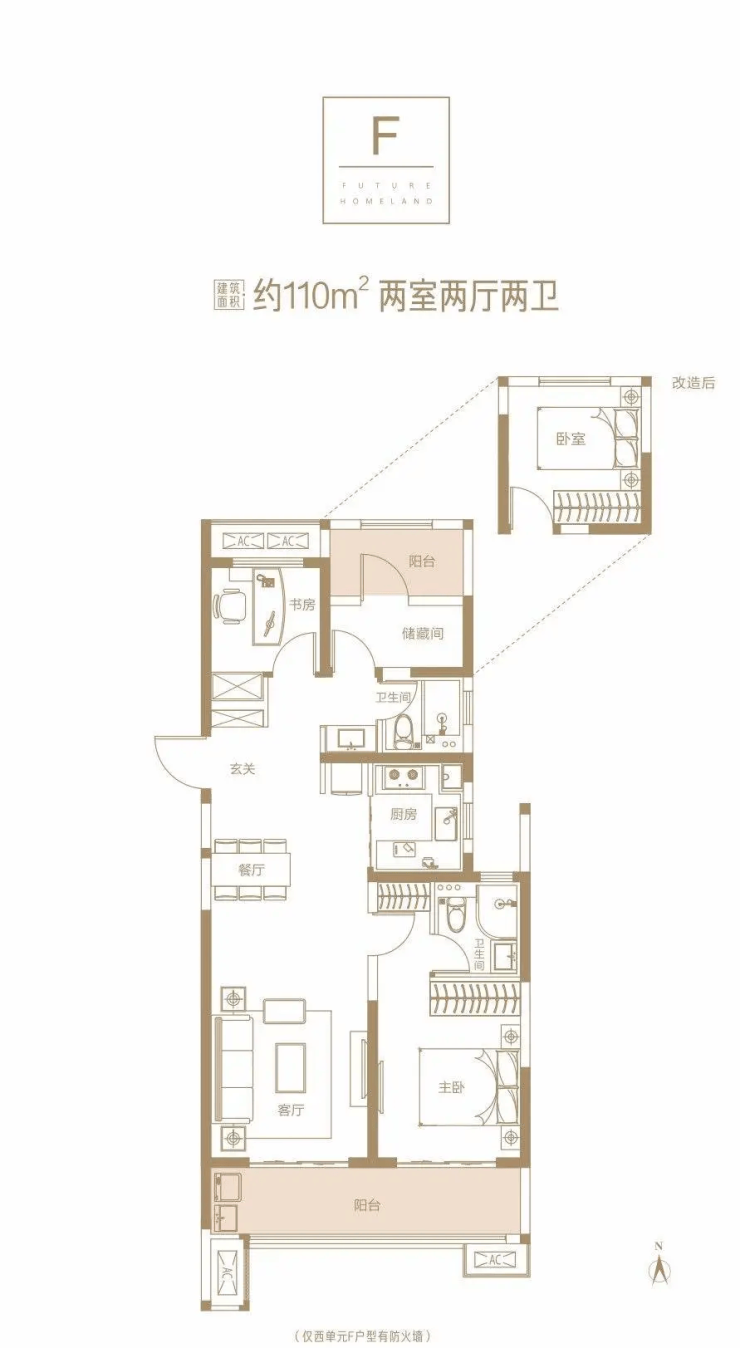 建面约89㎡/110㎡户型 (魔变三房):在标准三房基础上,通过可灵活改造的 “N+1”魔变空间,为书房、儿童活动区或储藏室提供更多可能,极大提升了户型的实用性。