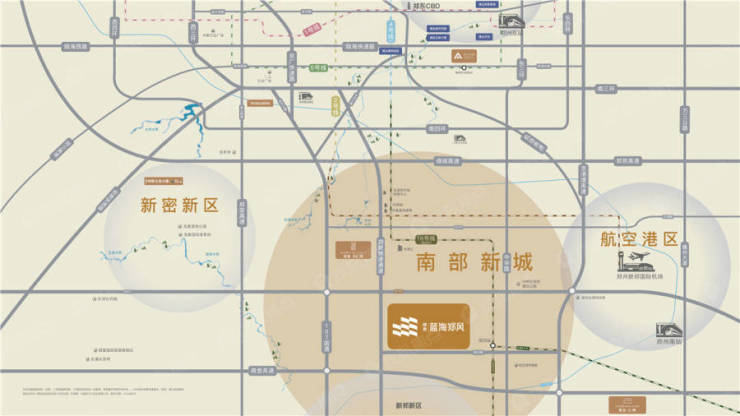 蓝海郑风,建业新蓝海战略转型升级作品,汇聚13个建业+幸福生态系统,旨在打造一个面向未来的新型社区。项目规划以古风中式的三经三纬、内城外郭、旁三门、中轴对称、南园北苑为构城理念,形成一轴一环六街的宏大格局。外郭不用建筑堆砌传统手法,而采用高大乔木和低密灌木打造的自然之墙,内城以原9大文化符号,设有9大主题居住板块,让居者感悟上下五千年的人居智慧。旁三门,构建三大形象门户,成就项目的山水名片、艺术名片、文化名片。南园北苑共5个公园,南园海螺馆为核心,北苑是以陈氏家道文化为依托,营造多样化生活体验。