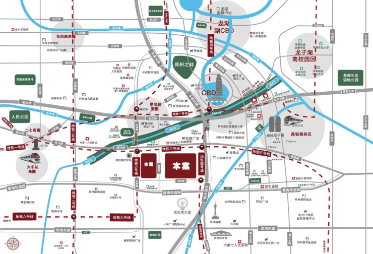 战略区位:项目位于金水区、郑东新区、管城区、经开区四区交会的枢纽要地,承接多区发展红利。与郑东新区CBD仅一路之隔,搭乘城市价值第一梯队。