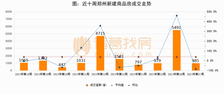 【郑州成交周报】第27周新房成交985套,涨价房源1712套