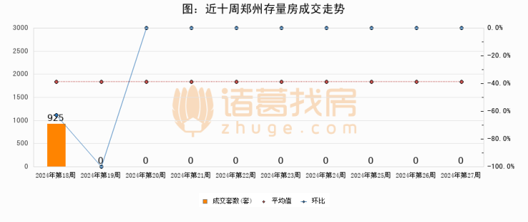 存量房方面,第27周郑州存量房成交0套,较上周持平。从近十周成交走势来看,周均成交套数为92套,本周低于平均水平100%。