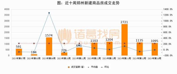【郑州成交周报】第15周新房成交1095套,二手房1610套,涨价房源344套