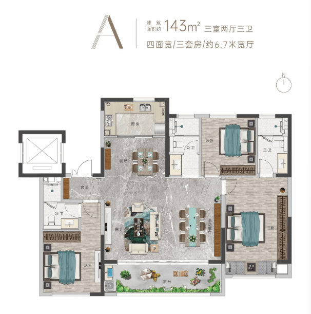 04 主力户型解析——约143㎡瞰河宽境大宅,定义纯粹改善标准
