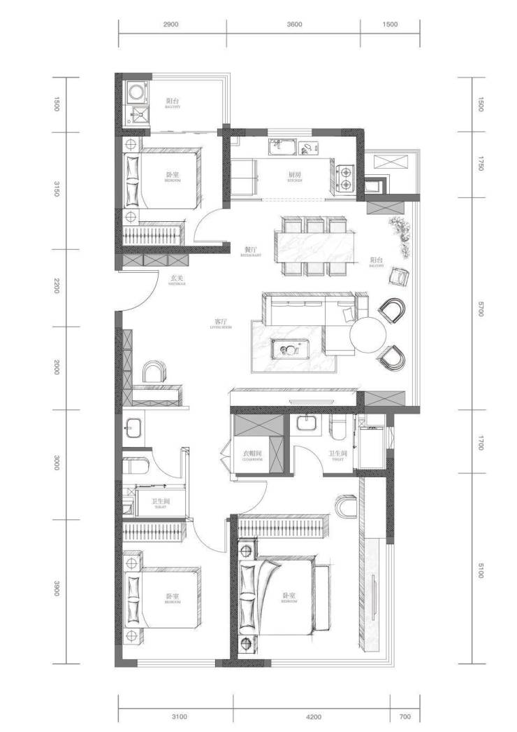 建筑面积约168㎡,四室两厅三卫