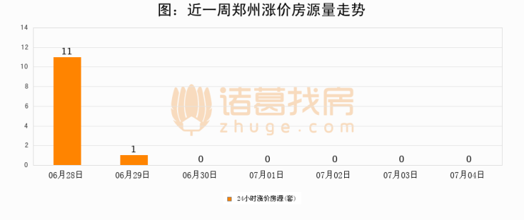 根据诸葛找房数据显示,郑州24小时涨价房源量为0套,较07月03日持平。