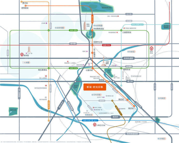 新城时光印象由千亿房企——新城控股开发,项目总规划开发四个地块总占地面积约320亩。项目地处三环旁、金岱科创城内,据守商都新区门户, 择郑东、经开和航空港区三区交会处,兼享老城成熟生活配套和新区发展红利,升值潜力巨大。项目周边交通体系完善,可实现直达郑东CBD,高铁郑州东站,新郑国际机场,居者尊享畅达生活,周边医疗、商业、市政等配套应有尽有,360°醇熟完整配套,悦享触手可及的精彩,项目内部同时规划有小学、初中、高中三块教育用地,一站式全龄教育配套优质教育资源,给孩子骄傲未来。西侧紧邻十八里河,东侧紧邻十七里河,双河环绕,轻松坐拥稀缺河景。