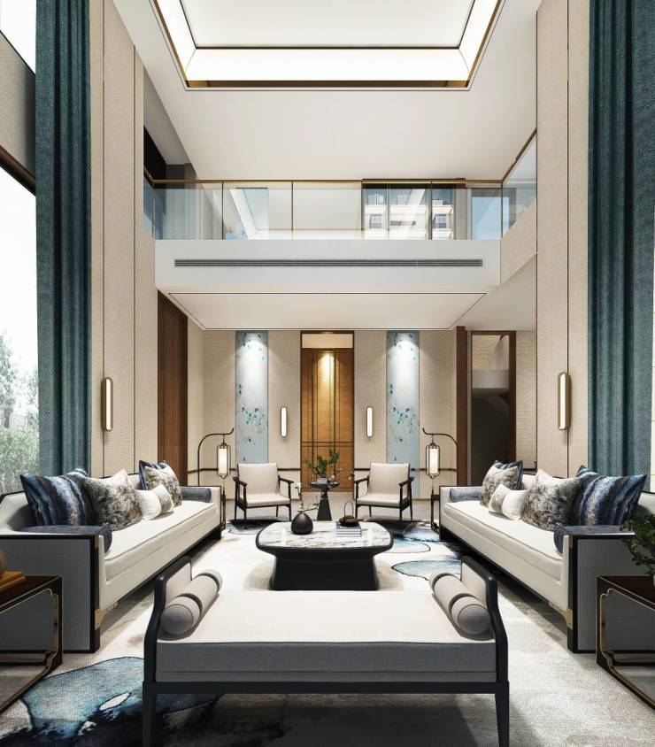 叠院客厅层高3.4米,合院及联院首层层高4.2米,地下室层高6.9米…