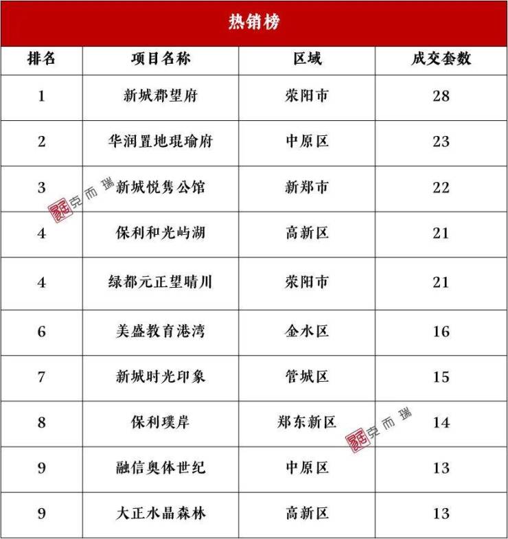 本周热销楼盘榜TOP3为新城郡望府、华润置地琨瑜府和新城悦隽公馆;(本次榜单均已排除本周开盘项目)