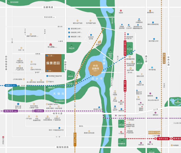 双外语名校教育组团:项目周边聚集高新区郑州外国语学校附属小学、高新外语中学(规划中) 等优质教育资源,并毗邻双一流郑州大学,形成浓厚的全龄优教氛围。