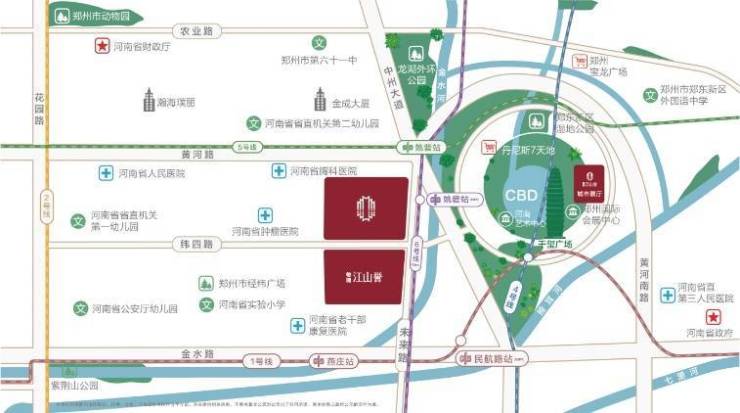 生态:金水河、紫荆山公园、红白花公园、CBD郑州之林;