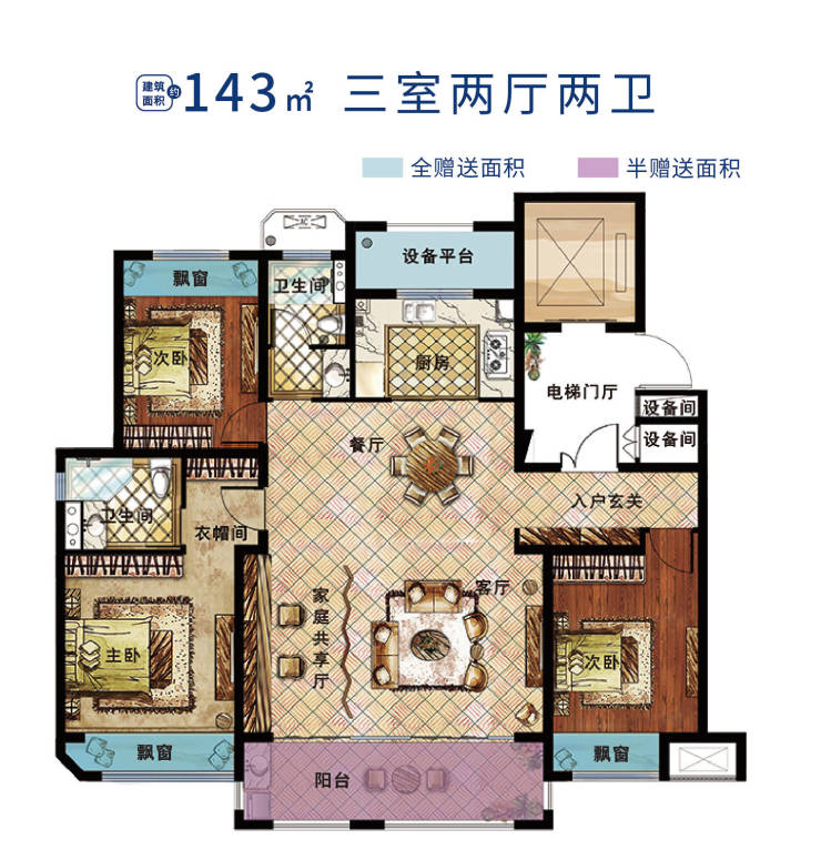 户型解析:小高层143㎡奢阔三房,大开间客厅与餐厅互动互融,方寸之间尽享居住艺术。