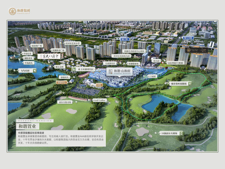 和谐置业,中原顶级圈层社区缔造者和谐置业是AAA级信用评级开发企业,12年专注深耕金沙湖,以和谐集团强大的资金实力支撑,无负债稳健运营,打造中原顶级别墅住区——金沙湖高尔夫观邸。
