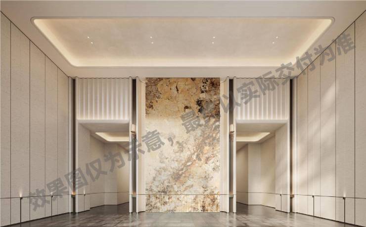 以国际高奢酒店为蓝本,空中洄廊、浮岛水庭、落日厅、双层架空跌水瀑布,全维立体景观系统