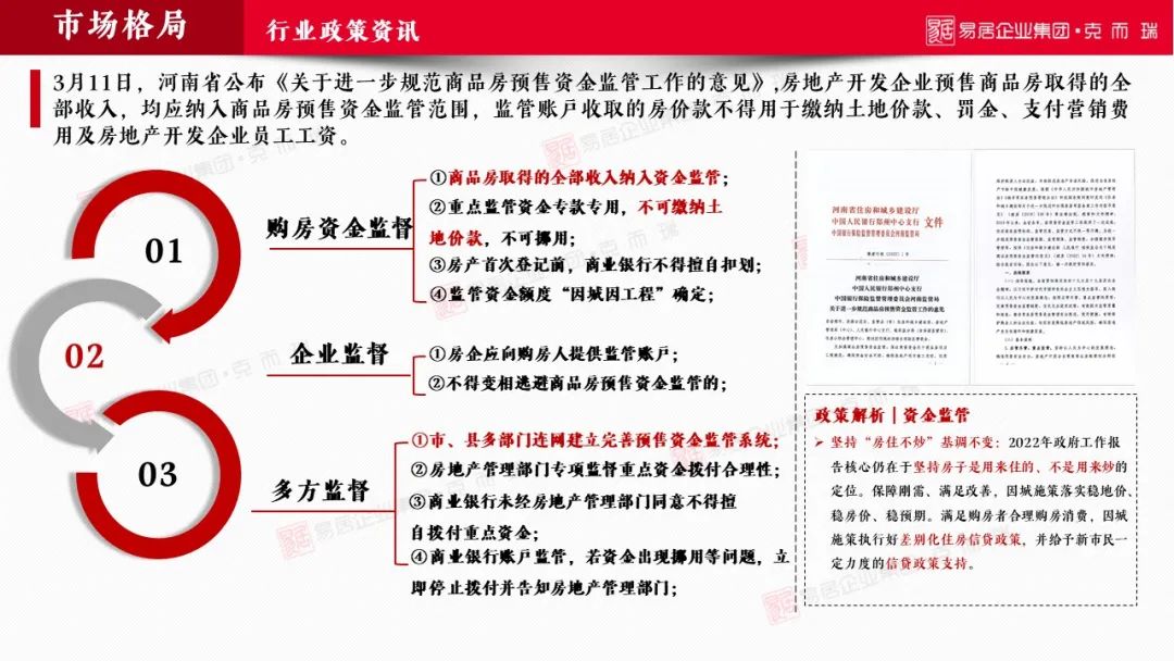 全国宽松基调明显,提倡释放利好信号,稳定预期,提振信心;“郑19条”积极落地,大力推动货币化安置,并开展引人留人措施;3月新政颁布后市场活跃度增加,成交量回涨,环郑价格止跌;