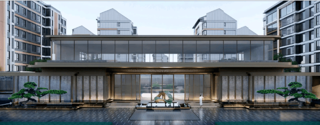 东方园林:汲取东方造园理念,运用现代顶奢酒店设计手法,营造写意山水与奢华静谧共生的社区园林。