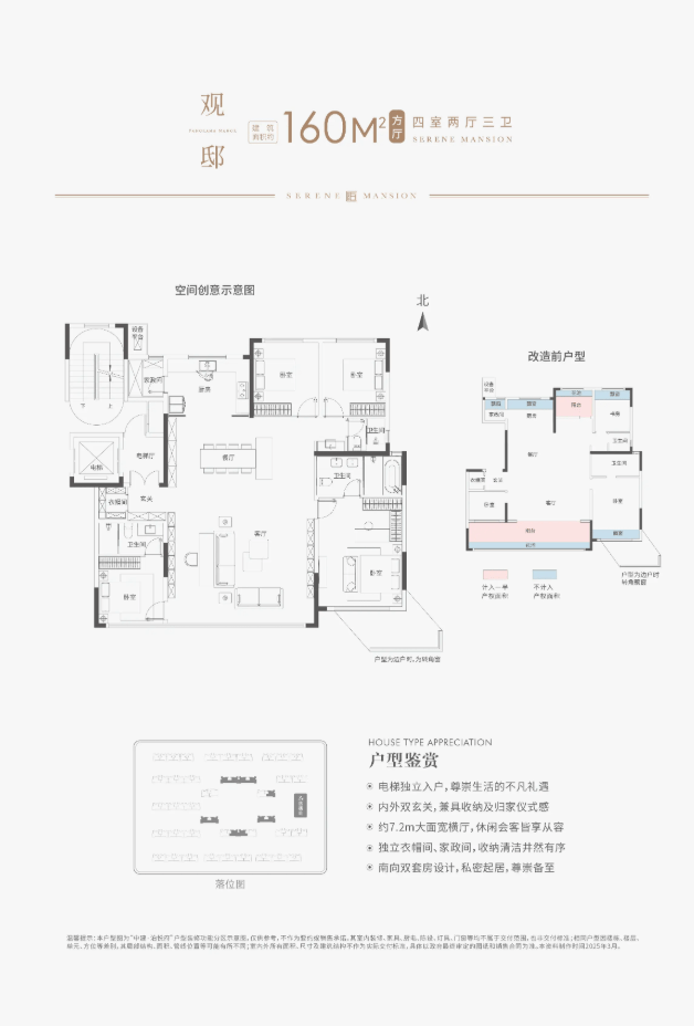 项目主打建面约127-188㎡的毛坯府院洋房产品。所有产品均为纯洋房形态,拥有私梯入户的尊崇配置,并实现 “全系超100%得房率”,为业主提供远超产权面积的实际使用空间。