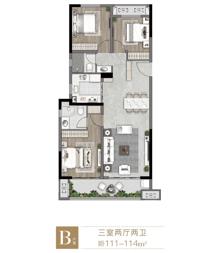 『户型鉴赏』A户型97-99㎡,三室两厅两卫,功能型三房