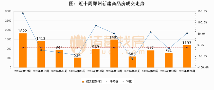【郑州成交周报】第21周新房成交1193套,二手房1505套,涨价房源2套