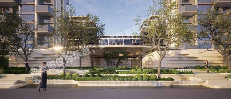 约100米自然城市界面+约60米酒店式落客门厅,以度假式的场景递进,重构城市改善归家标准