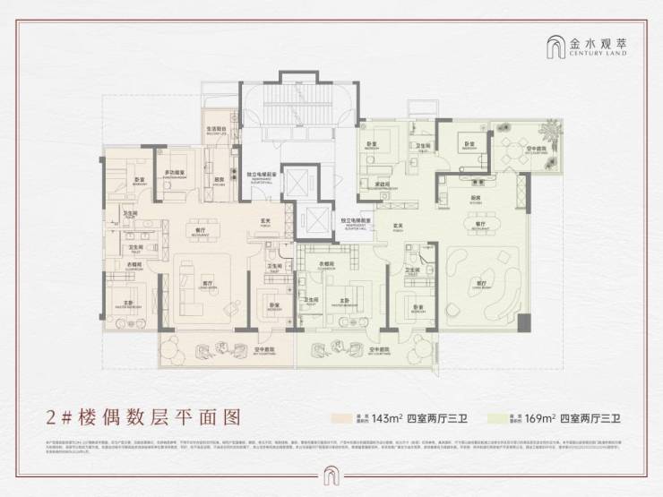 面积:143㎡ 四室两厅三卫(西边户)