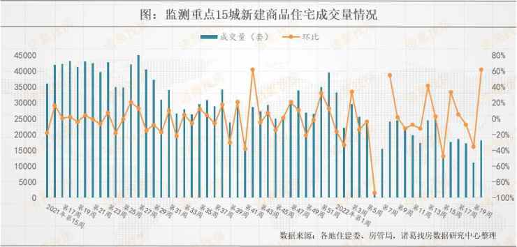 一、2022年第20周重点15城新房成交环比上升62.12%,杭州成交升幅突出